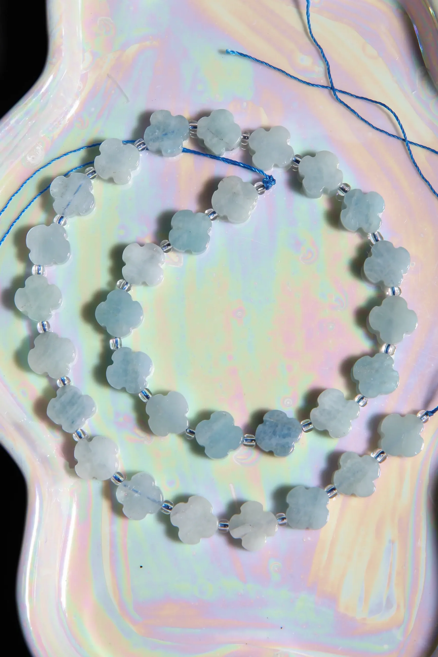 Perle fleur aigue-marine en pierre naturelle sur fil