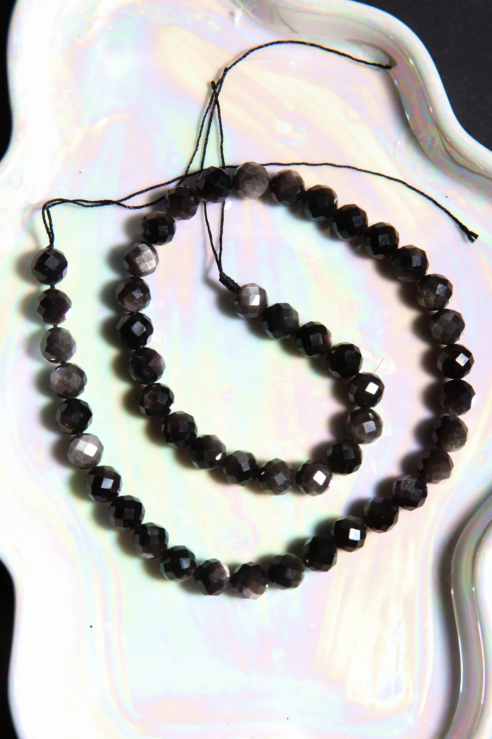 Perle Obsidienne Argenté rondelle facettée en pierre naturelle sur fil